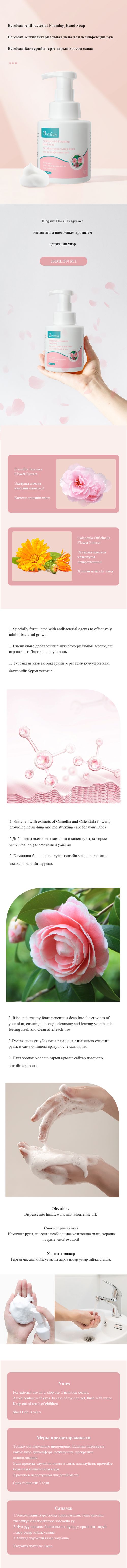BercleanБактерийн эсрэг хөөсөн гарын саванцэцэгсийн үнэртэй RYA139
