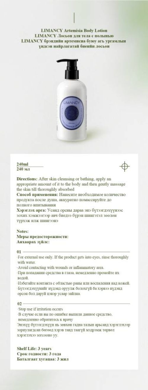 LimancyАртемисиа буюу агь ургамлын үндсэн найрлагатай биеийн лосьон MZA582